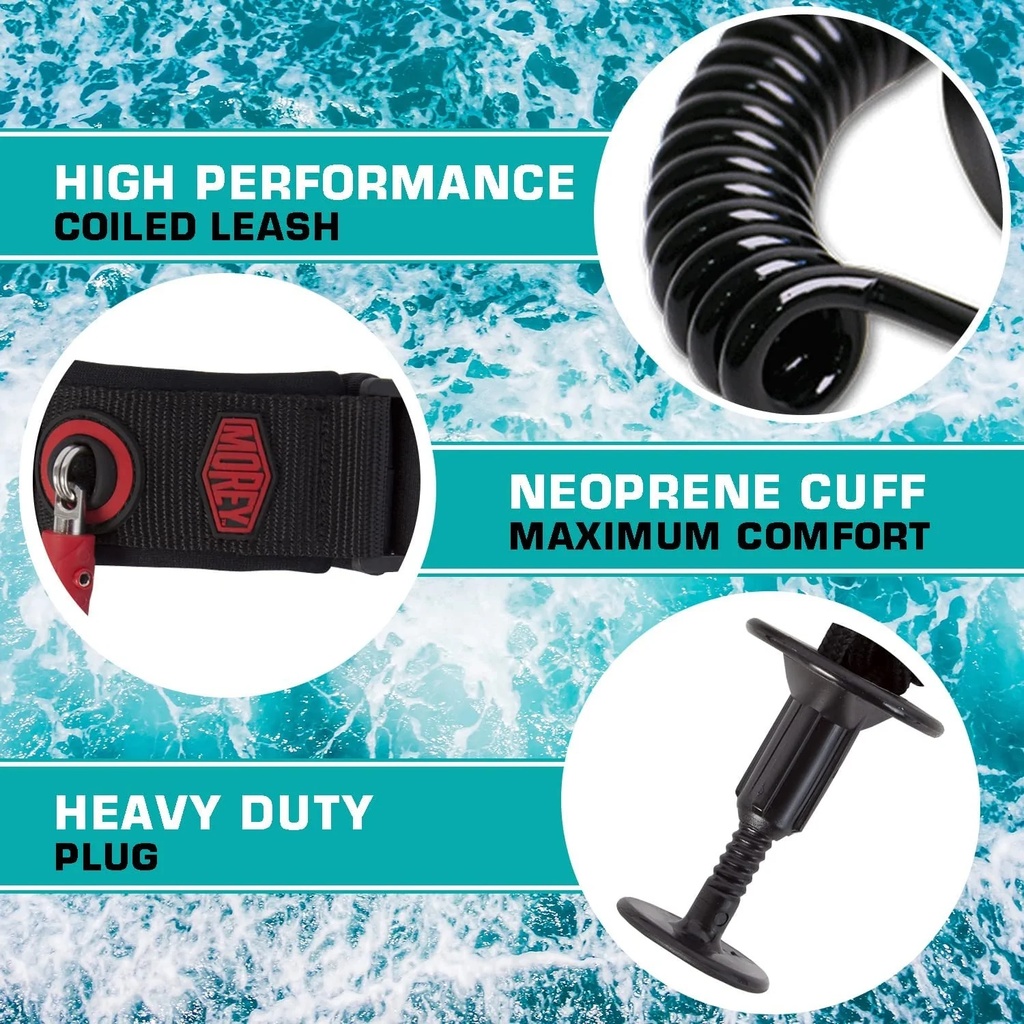 The Wrist Pro Coil is a high-performance coil leash with dual brass swivels, ultra-padded neoprene cuffs, and a heavy-duty plug.